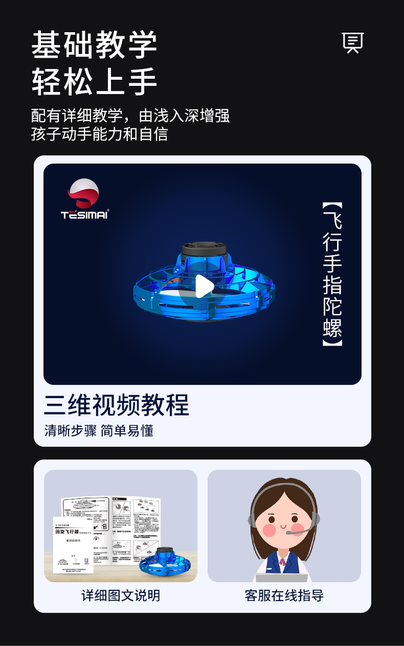 TESIMAI黑科技回旋指尖陀螺UFO飞碟儿童玩具